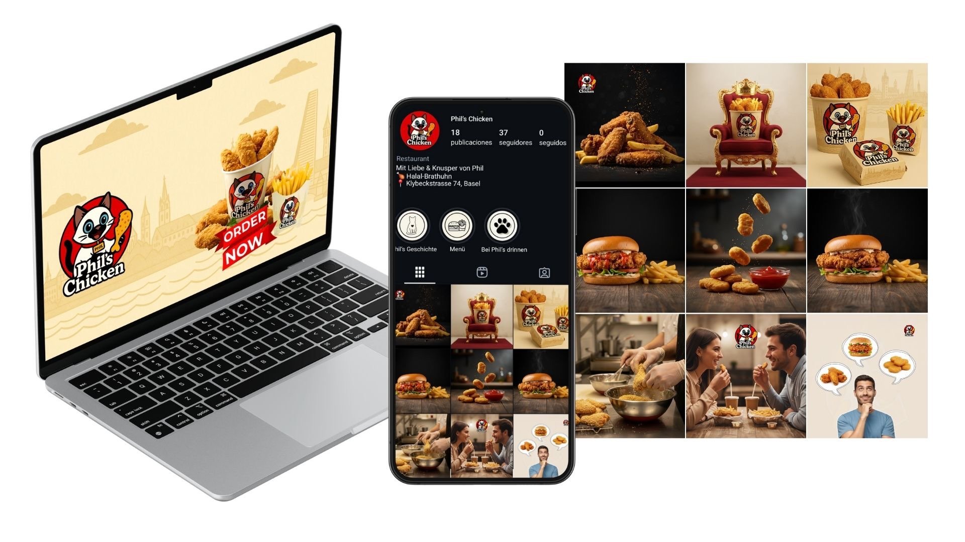 Wir bringen den Crunch auf deine Strasse. Knuspriges Poulet, saftige Burger und goldene Pommes.